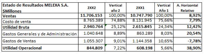 La empresa Melexa S.A., dedicada a distribuir artículos ferreteros a nivel nacional, presenta su estado de resultados.